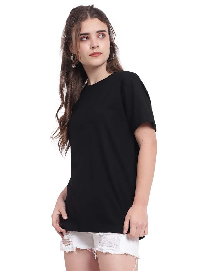 Plain Black Cotton T-shirt for Women